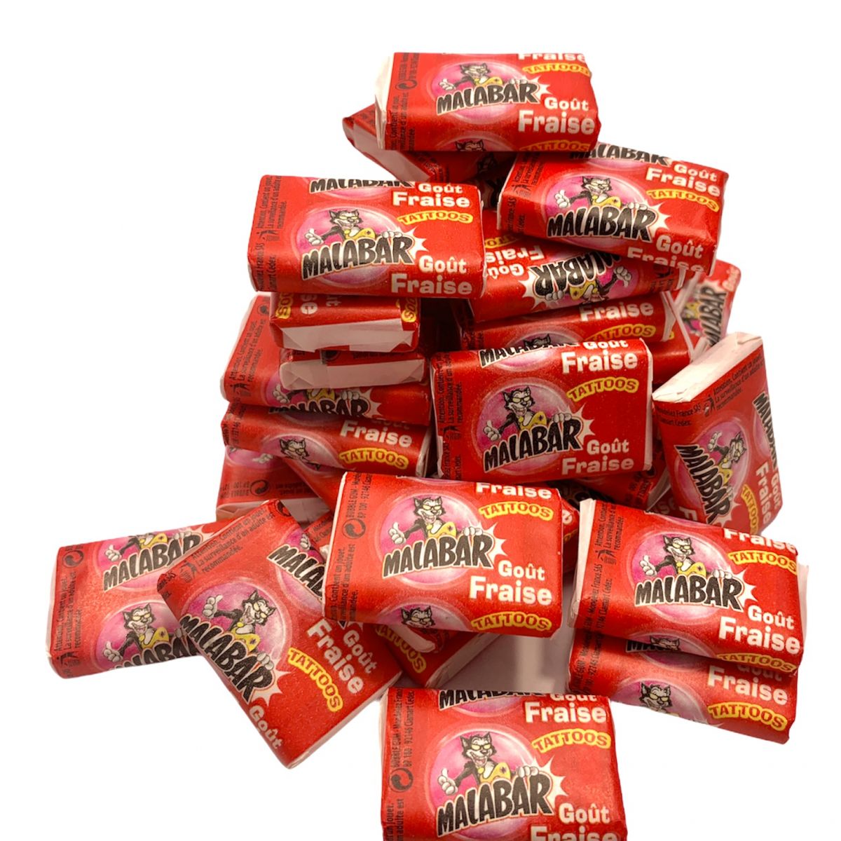 Ingrédients: Sucre, gomme de base, sirop de glucose, dextrose, arômes, stabilisant : E422, antioxygène : E320, colorant : E124