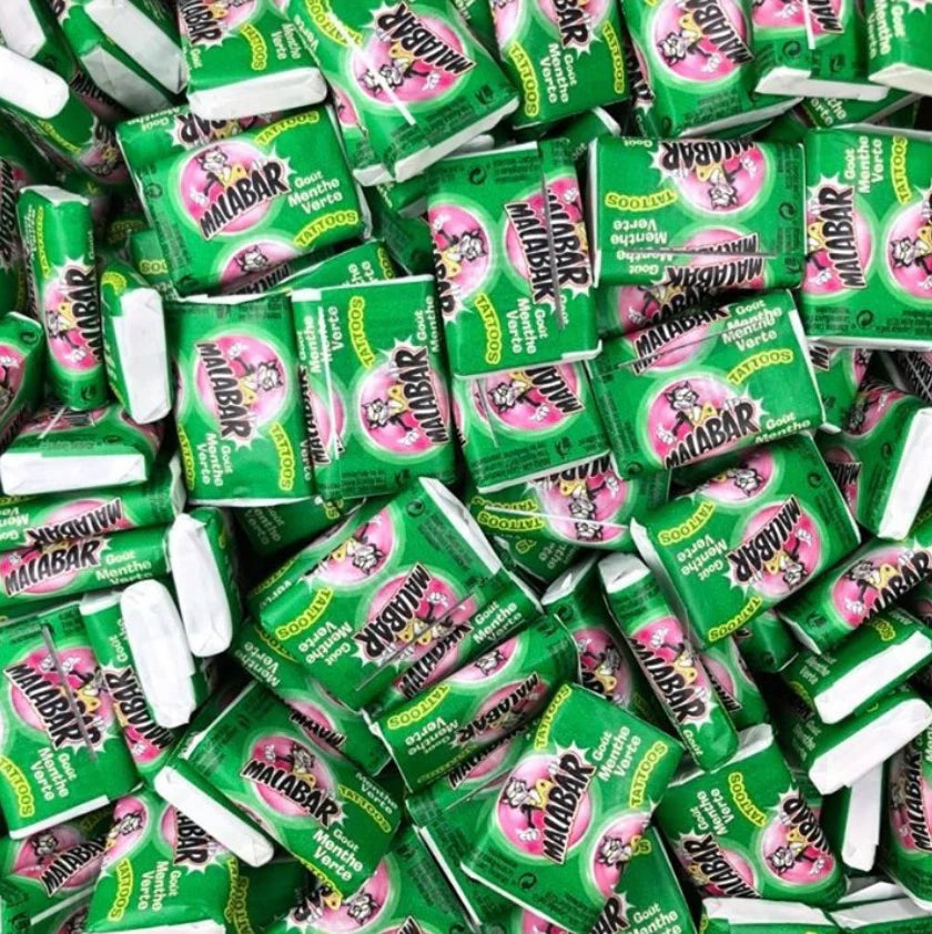Ingrédients : Sucre, gomme base, sirop de glucose, arômes, humectant, (E422), antyoxidant (E321), colorant E141