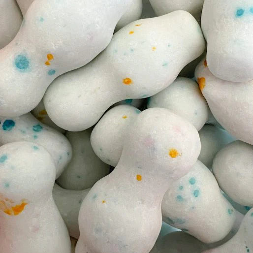 Ingrédients : Dextrose, Sucre, Gomme base, Sirop de glucose, Acidifiant : acide citrique, Arômes, Humectant : glycérine, Amidon modifié, Colorants : E 133, E 141, E 160a (et parfois également E 171 ou E 120 selon les références), Concentré de carotte noire, Agent d'enrobage : E 904, Antioxydant : E 321 (BHA), Chewing‑gum (bubble‑gum) au centre